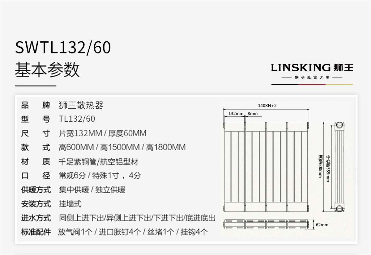 銅鋁復合暖氣片/散熱器_132x60